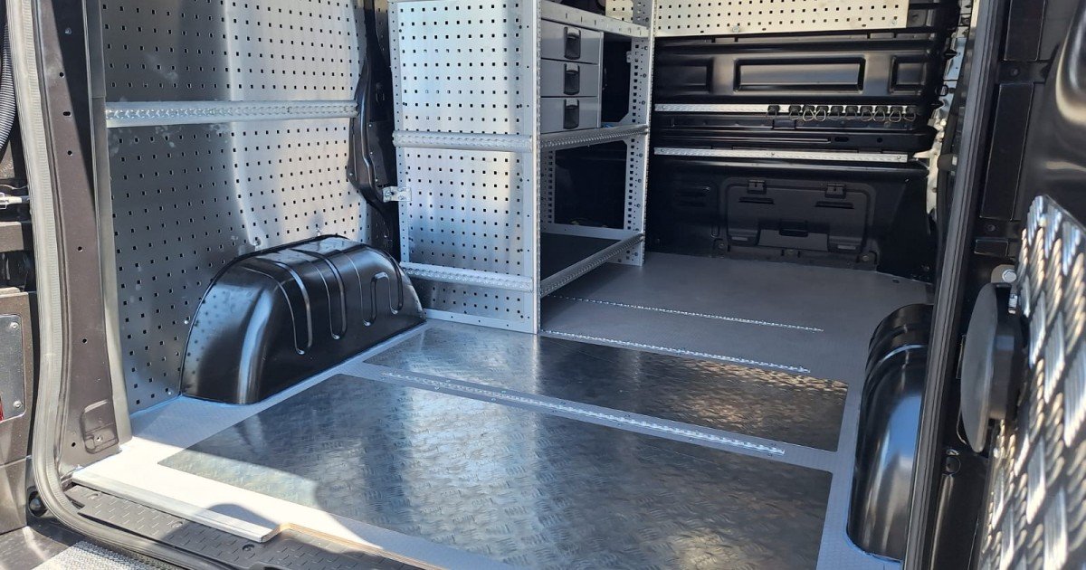 A wheel arch liner is also strategically mounted with an eye toward maximizing available storage space. It provides a sturdy and flat platform on which to place free-standing work equipment. Tension rails are provided on the side walls to secure the equipment.